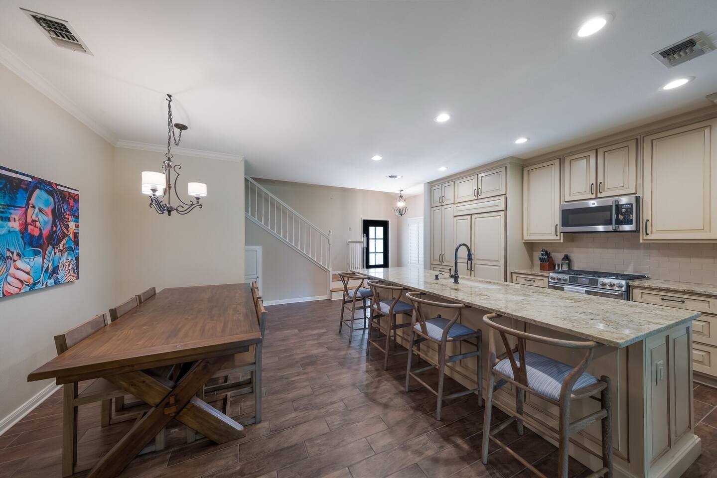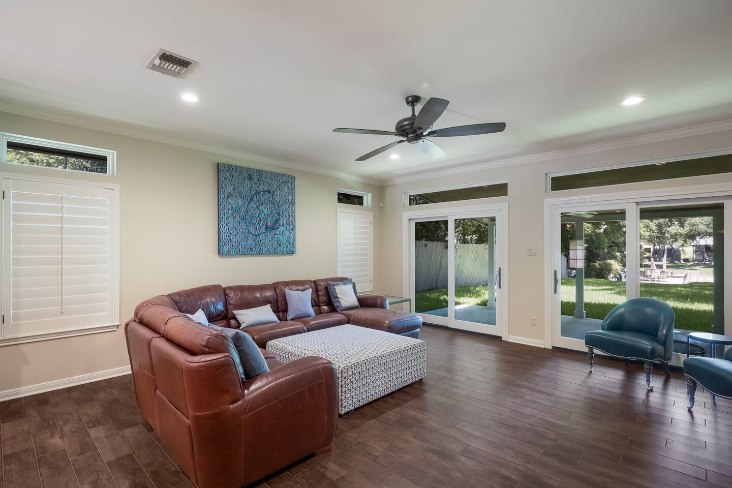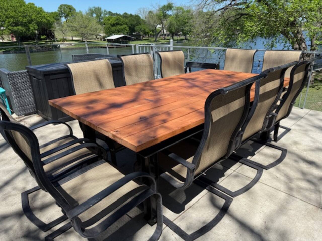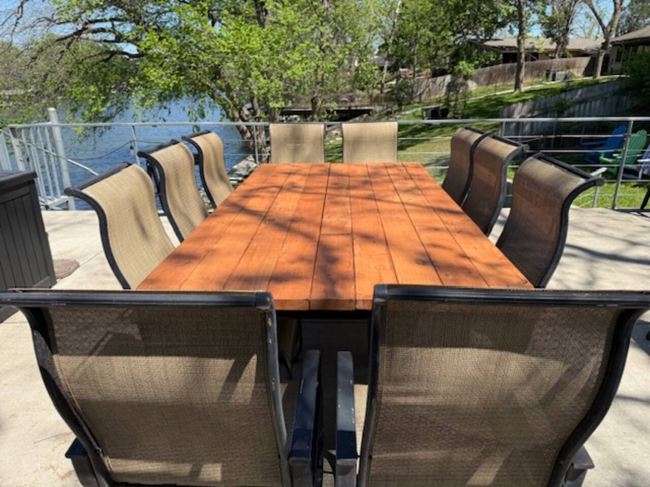 Designed for Groups and Families: Our spacious abode comfortably accommodates 14 guests, making it a dream spot for families, friends, and everyone looking to experience the joy of floating down the Lake Dunlap is full again! Enjoy this dammed section of the Guadalupe River at it's full lake height for all of your summer fun. Only 10-minutes from downtown New Braunfels, you and your family will love this spacious home that comfortably sleeps 14. Two living spaces in the home make it easy to separate kids from adults for playtime and movie watching. Kayaks, paddle boards, tubes, and life jackets are all included in your rental. This is a two story waterfront home with 4 bedrooms, an office, and 3.5 baths. Downstairs is the primary bedroom with a king bed, a second bedroom with two twin beds, and an office with a day bed and a trundle bed. Upstairs are two more bedrooms with two queen beds in each room. There is a living room downstairs and a second living room upstairs. If you need to work, there is an office with a monitor, port replicator, keyboard, mouse and chair. The backyard is massive. There is a dock and a boat house deck for dining and lounging. A propane BBQ grill is on the boat house deck. A hammock and fire pit add a little extra coziness as well. Two arcade games upstairs make for added fun. Enjoy NBA Jam and Golden Tee! FYI for those with allergies -The home houses dogs regularly.